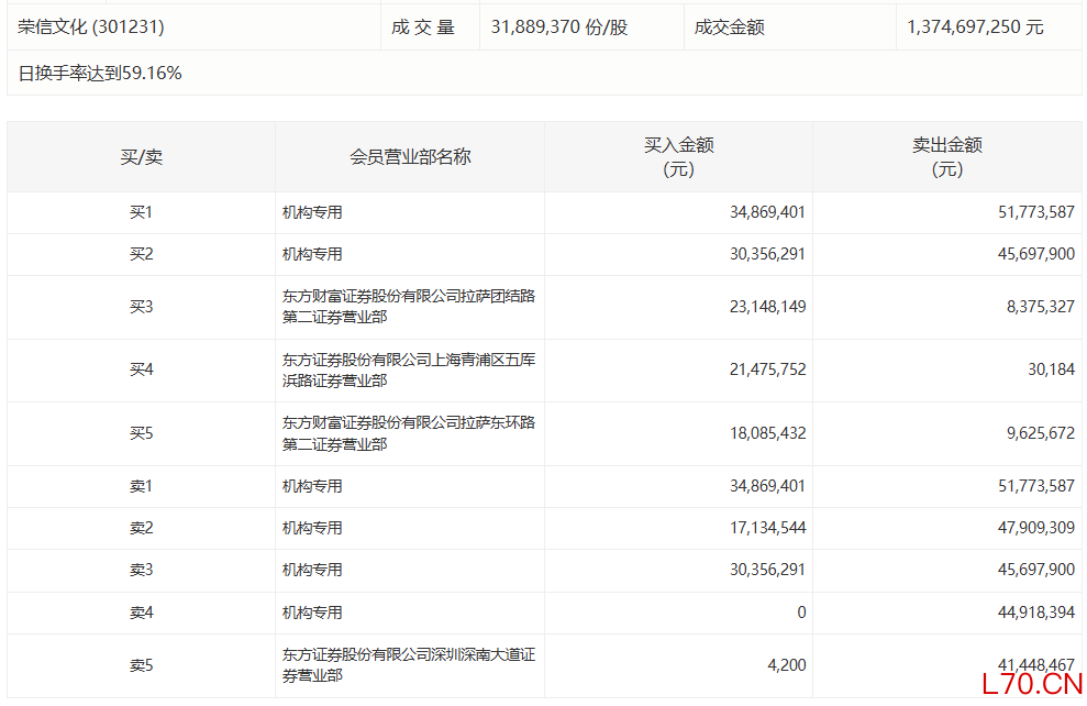 荣信文化今日跌14.19%,有4家机构专用席位净卖出1.08亿元