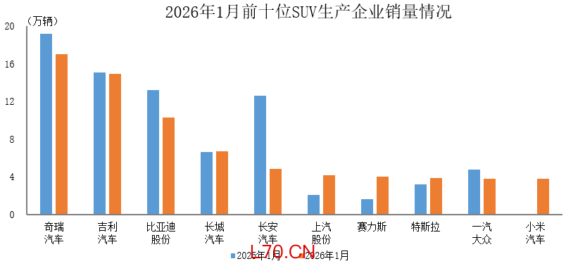 中汽协:1月销量排名前十位的SUV生产企业共销售73.4万辆