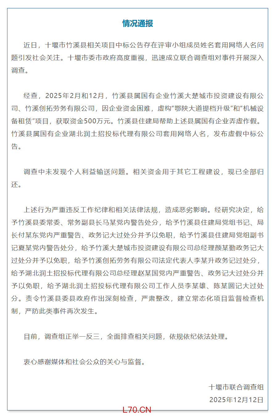 湖北十堰通报“最忙五人组”事件:多人被处分并免职
