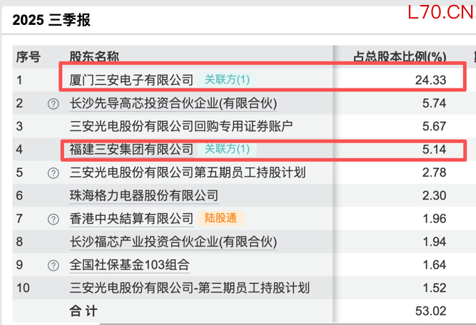 股权结构方面,截至2025年第三季度,三安集团直接持有三安光电5.14%股权,并通过下属公司三安电子持有上市公司24.33%股权。林秀成直接持有三安集团59.68%股权,与其子林志强合计持有三安集团71.83%股权,为上市公司实控人。