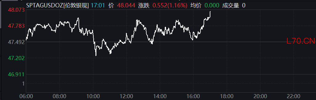 现货白银日内涨超1%
