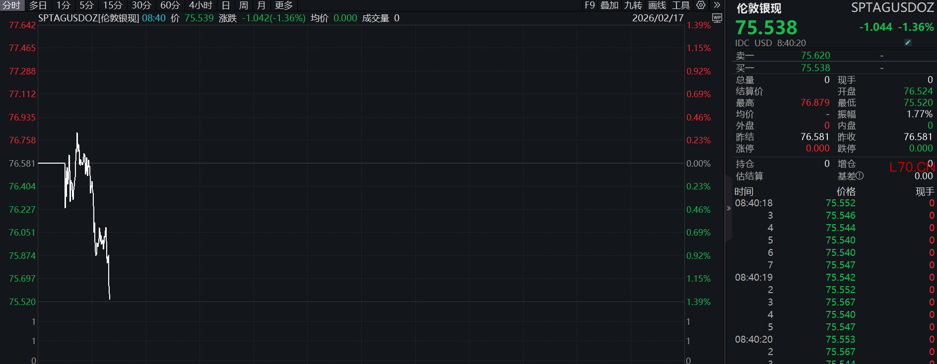 现货白银跌超1%