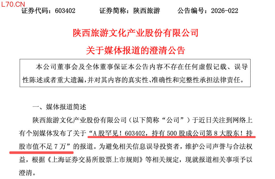 陕西旅游4月20日晚间发布公告称,公司于2025年12月26日以定价方式完成了公司首次公开发行股票,发行股数1933.33万股。这些股份于今年1月6日起才上市流通。根据中登公司上海分公司于2025年12月26日下发的《合并普通账户和融资融券信用账户前10名明细数据表》(下称“股东名册”),公司股东户数为3.86万户,其中发行前股东6名,余额包销承销商1名。其余中签500股的户数共计3.81万户,并列成为公司第八大股东。