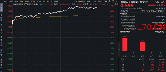 中东局势缓和,叠加政策利好,国产芯片涨“疯”了!4月8日,重点布局国产AI产业链的科创人工智能ETF华宝(589520)场内价格午后飙涨6.75%股票配资支持港股吗,现涨6.39%,盘中收复10日、20日均线。