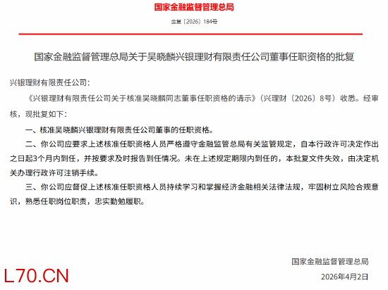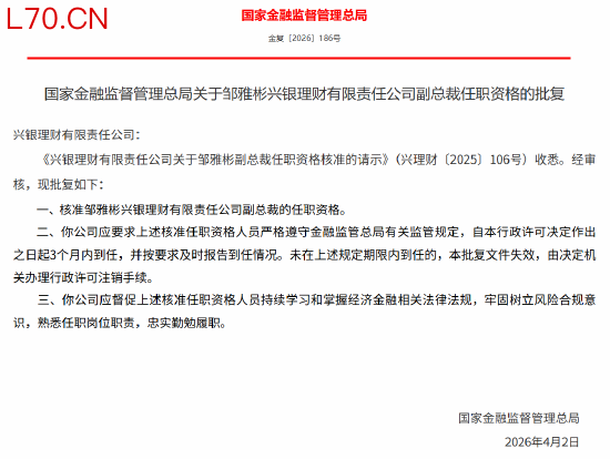 邹雅彬获批担任兴银理财副总裁,吴晓麟获批担任兴银理财董事